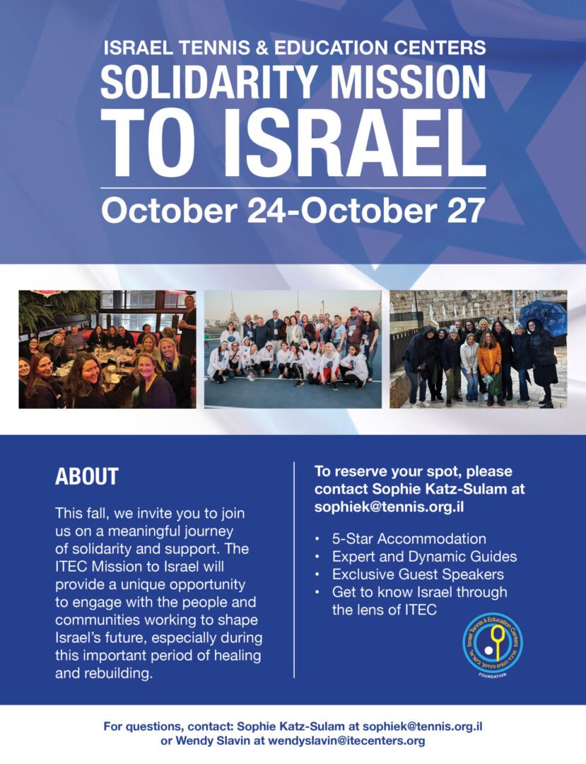 To reserve your spot, please contact Sophie Katz-Sulam at sophiek@tennis.org.il.
